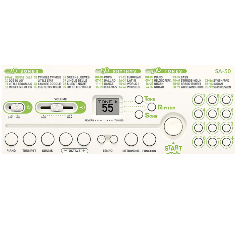 Một trong những tính năng nổi bật của Casio SA-50 là 100 âm sắc đa dạng, bao gồm các loại nhạc cụ như piano, organ, violon, và nhiều hơn nữa. Điều này giúp bạn dễ dàng thay đổi phong cách âm nhạc và thử nghiệm với các âm thanh khác nhau mà không cần phải mua thêm bất kỳ thiết bị nào. Bạn có thể chơi từ các bản nhạc cổ điển, pop, đến các thể loại nhạc hiện đại mà vẫn giữ được chất âm sắc nét và trung thực.