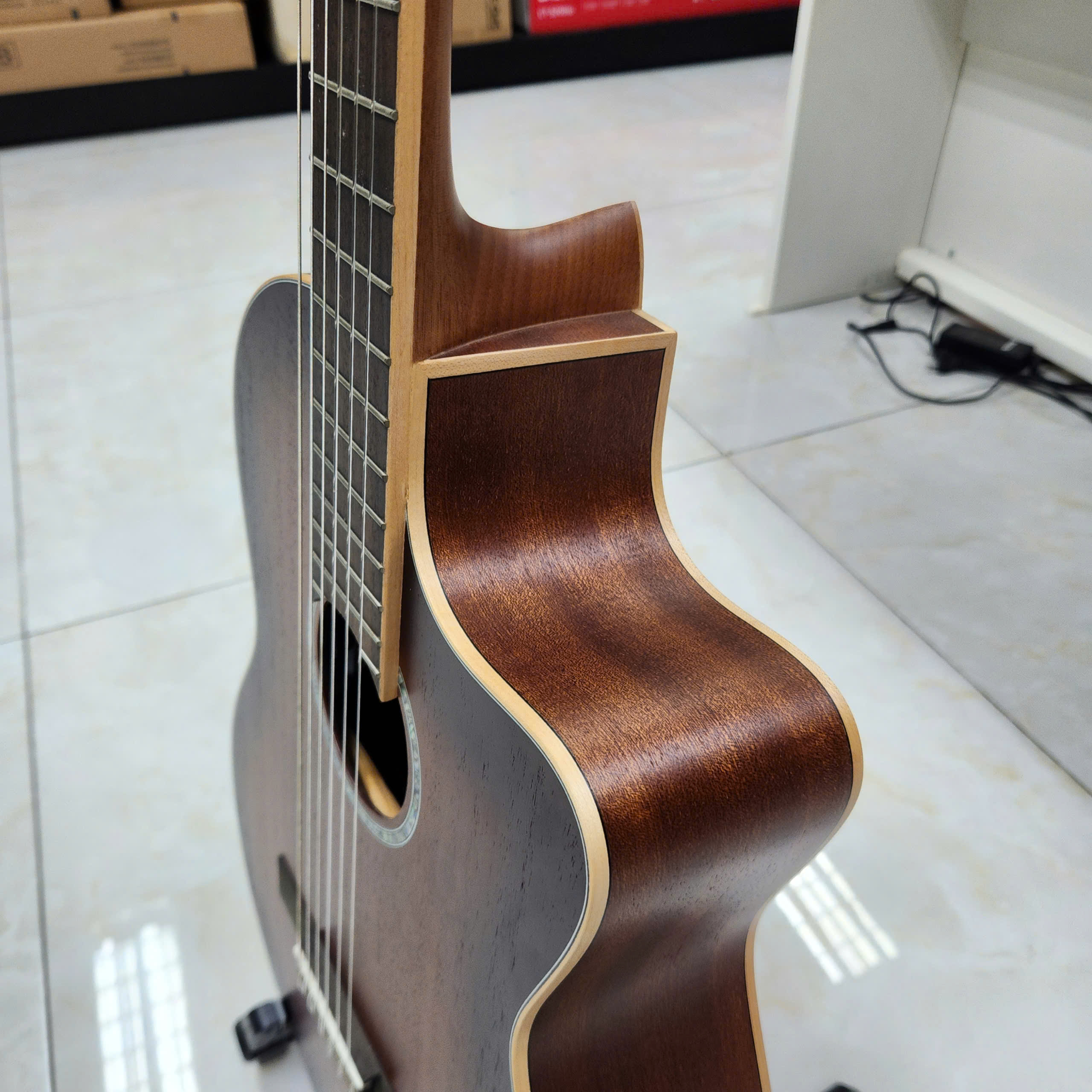 Cần đàn được thiết kế từ chất liệu gỗ Maple tạo nên sự chắc chắn, êm tay khi sử dụng và hạn chế được các tác động mạnh như va đập,...