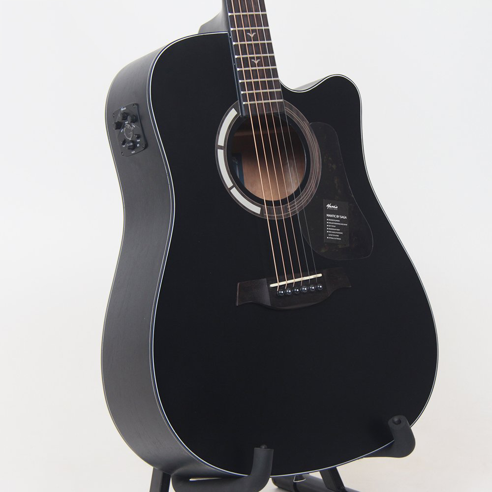 GT1 DCEBK được trang bị pickup Mantic M1 - hệ thống khuếch đại âm thanh do chính SAGA phát triển, được thiết kế gọn gàng và dễ sử dụng. Với đầy đủ các nút điều chỉnh như EQ 3 băng tần (Bass – Middle – Treble), volume, nút phase chống hú và tuner tích hợp, M1 cho phép người chơi tinh chỉnh âm thanh linh hoạt và chính xác. Dù thuộc phân khúc phổ thông, Mantic M1 vẫn mang lại âm thanh rõ ràng, ổn định, phù hợp cho biểu diễn bán chuyên, thu âm tại nhà hoặc chơi tại các không gian nhỏ.
