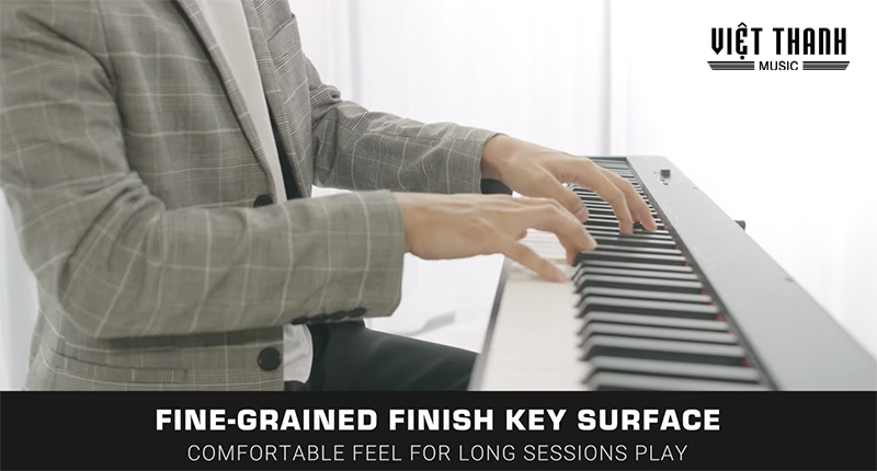 Lớp phủ mịn màng trên bề mặt của phím đàn giúp chống trượt do mồ hôi và các phím mang lại cảm giác thoải mái cho đầu ngón tay ngay cả khi chơi trong thời gian dài.