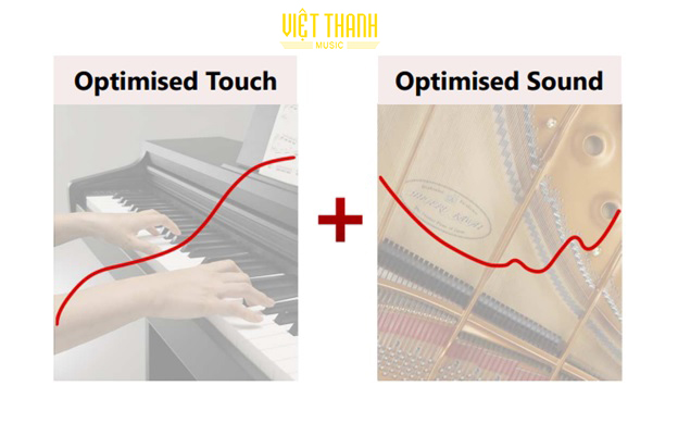 Công nghệ bộ máy bàn phím của Kawai cũng nâng cao khả năng giám sát tốc độ mỗi phím, điều này ảnh hưởng đến đặc tính giải phóng của âm thanh piano, và cung cấp phạm vi biểu đạt lớn hơn giữa hai kỹ thuật chơi staccato (nảy tiếng) và legato (liền tiếng).