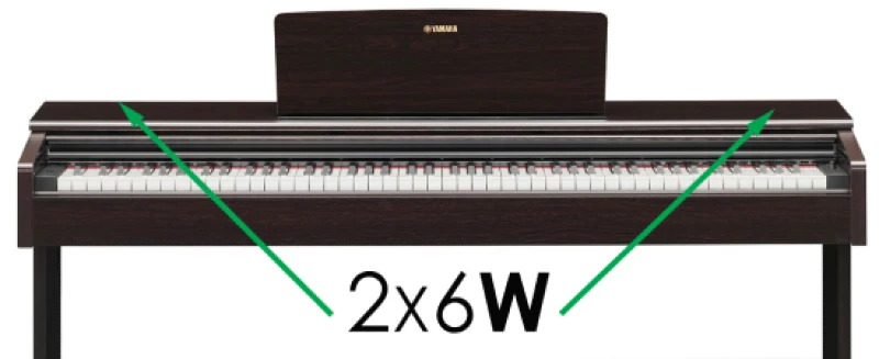 Đàn piano điện Yamaha YDP-105 tích hợp 2 loa kích thước 12cm cho mỗi loa, công suất loa 6W x 2. Tuy không phải là hệ thống loa mạnh mẽ nhất để sử dụng cho hội trường lớn. Nhưng Yamaha YDP-105 hoàn hảo cho các buổi luyện tập tại nhà, trong lớp học hay giải trí cùng gia đình, bạn bè.