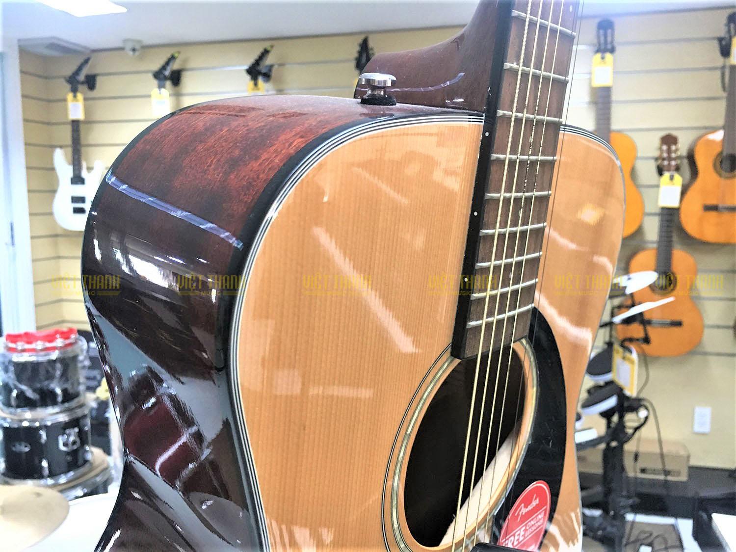 Đàn guitar Fender CD-60S NAT được phủ một lớp sơn bóng tự nhiên lên toàn bộ đàn nhằm hạn chế tối đa tình trạng trầy xước, phai màu theo thời gian đem đến sự sang trọng cho mọi không gian biểu diễn.