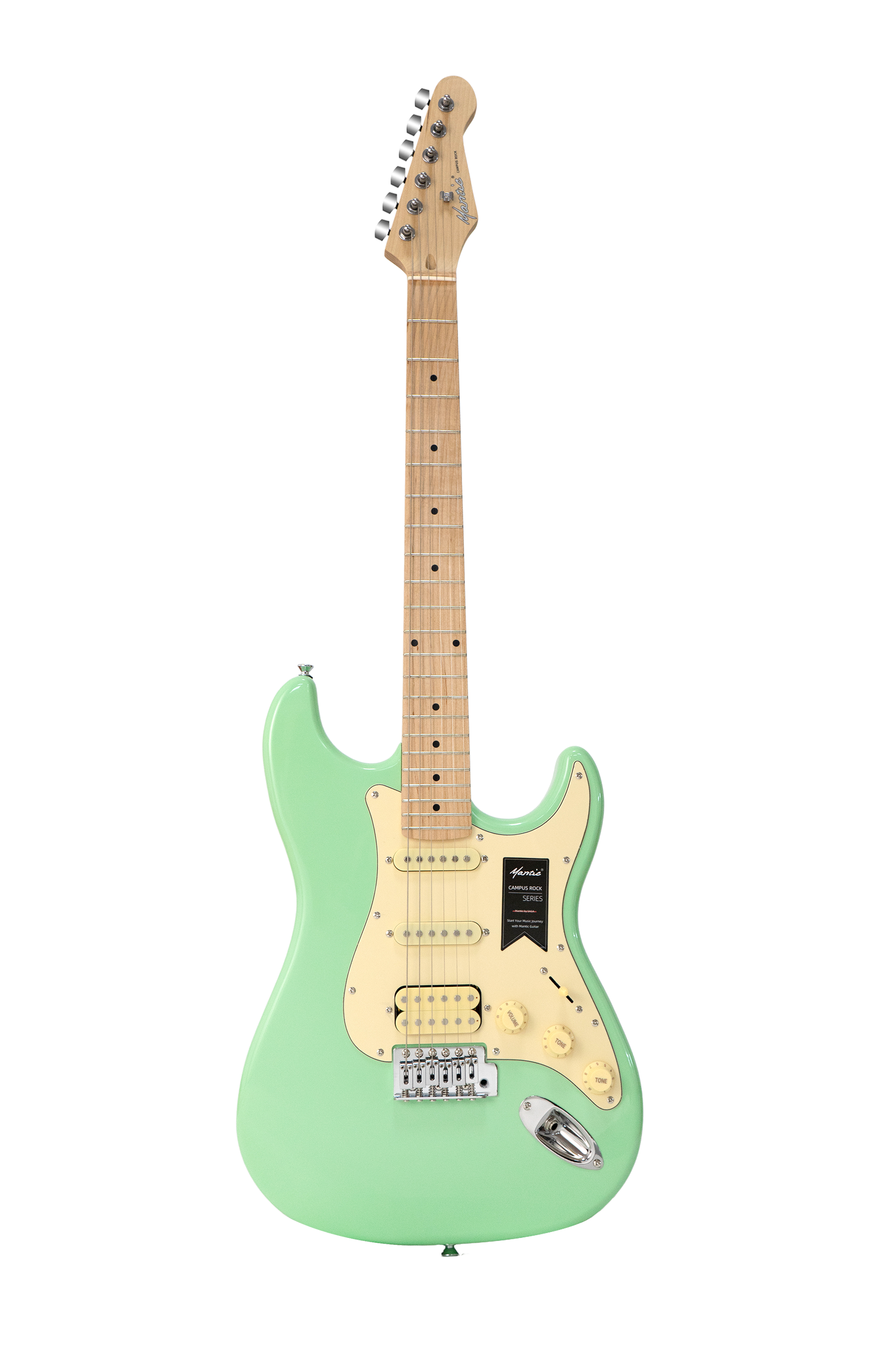 MST100 HGRGuitar điện Mantic MST100 HGR sở hữu màu xanh cốm ngọt ngào nhẹ nhàng trên cây guitar điện ấn tượng mạnh độc lạ. Dáng đàn Stratocaster kết hợp lớp sơn bóng (Glossy) giúp cây đàn vừa sang trọng, vừa cuốn hút, trẻ trung, nổi bật mà cũng vô cùng phong cách
