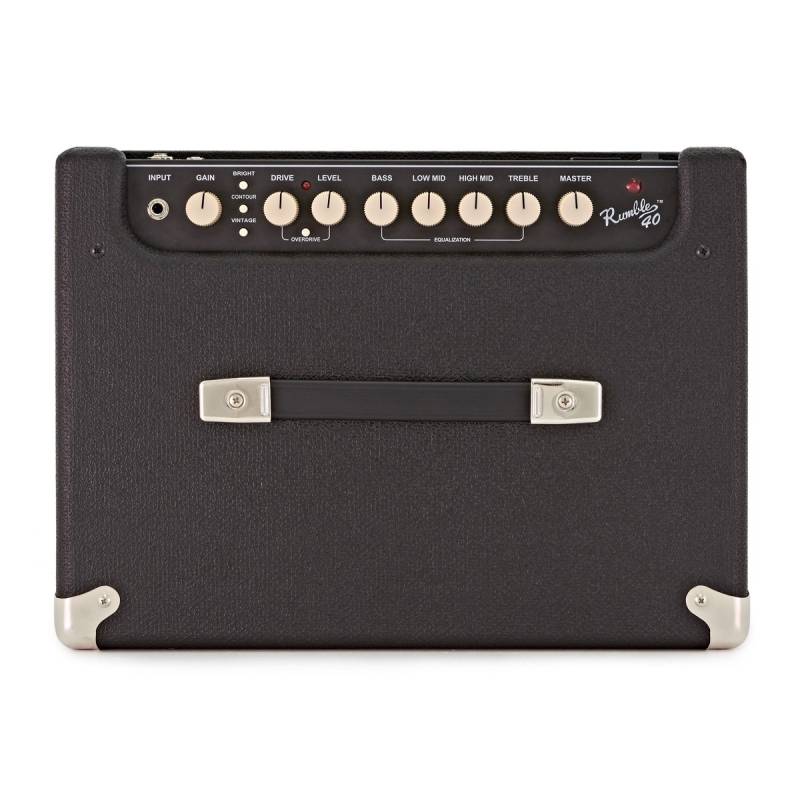 Series Ampli guitar bass Rumble của nhãn hiệu Fender bao gồm nhiều mã sản phẩm với các mức công suất và các effect, tiện ích nâng cấp tùy theo mức độ sử dụng. Ampli Fender Rumble 40 (Model No.2370306900) với mức công suất 40W mạnh mẽ, củ loa bass 10" tái tạo âm trầm ấn tượng, đáp ứng tốt cho các bassist trình diễn trong các band nhạc trên sân khấu quy mô, với ngõ out XLR trực tiếp ra dàn âm thanh.