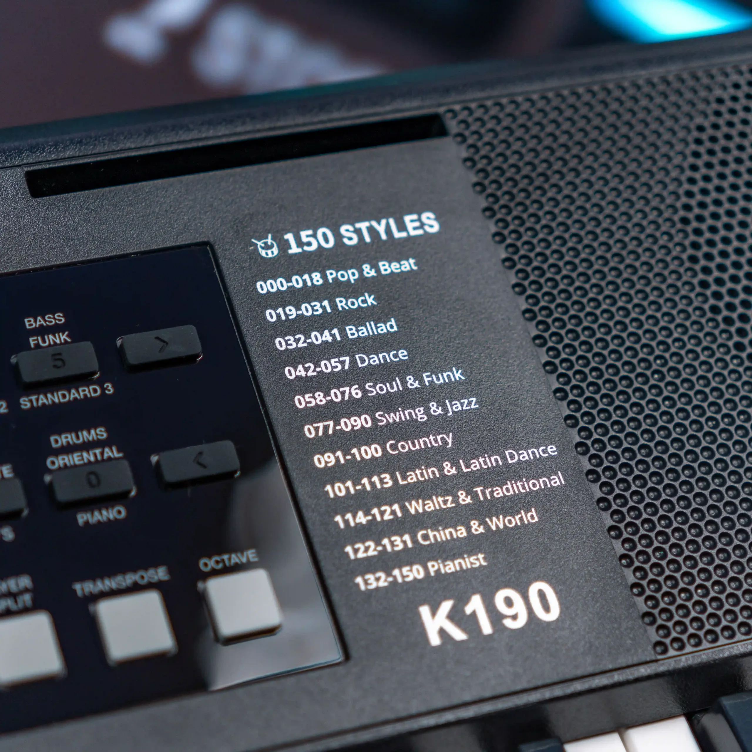 K190Kurtzman K190 là mẫu organ 61 phím thuộc dòng K-series nổi tiếng, được thiết kế nhỏ gọn, dễ sử dụng, tích hợp loạt tính năng học nhạc thông minh và hệ thống âm thanh chất lượng. Với 450 âm sắc, 150 điệu đệm, ghi âm đa track, K190 là lựa chọn lý tưởng cho người mới học, chơi giải trí hoặc luyện ngón tại nhà.
