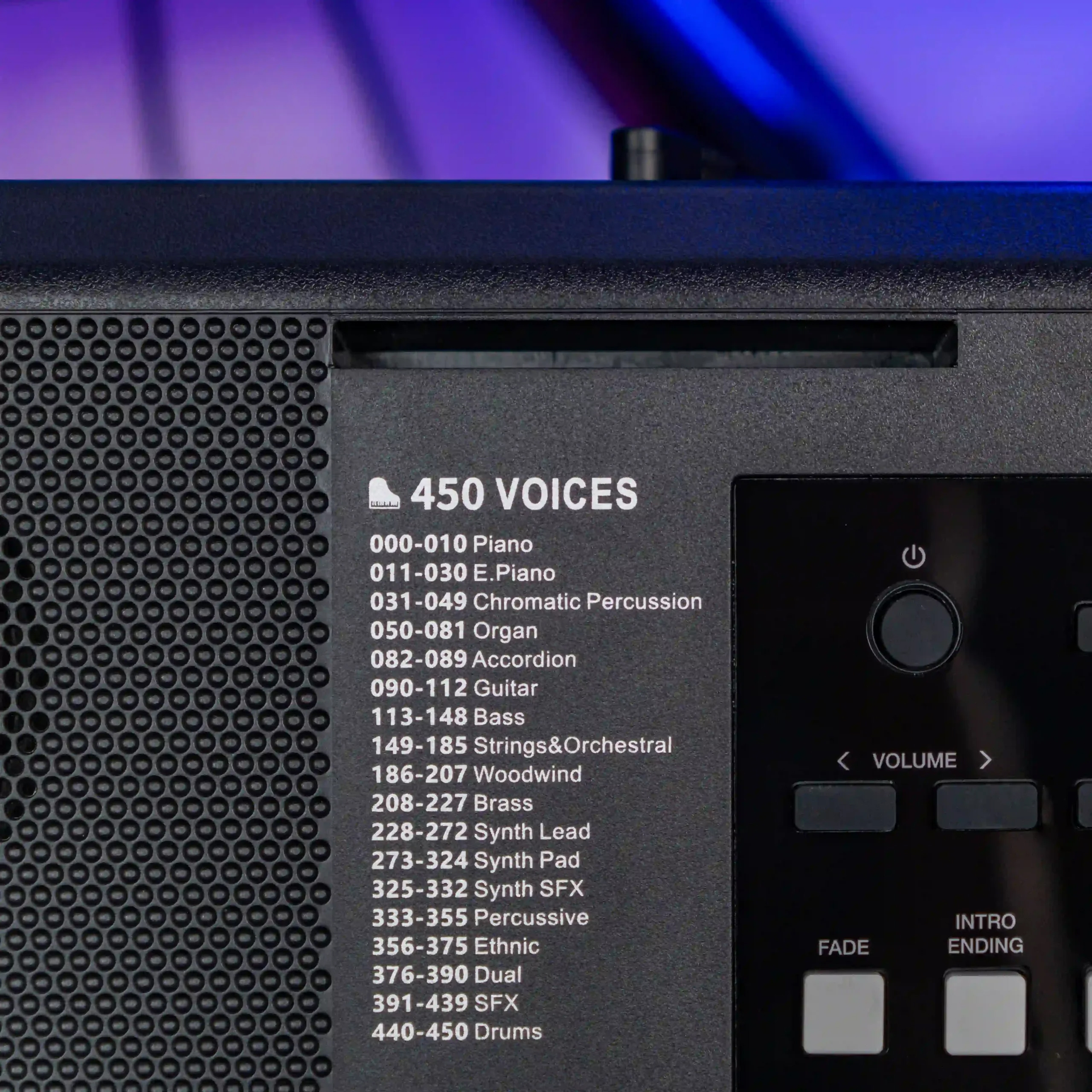 Dù là người mới học hay chơi bán chuyên, bạn vẫn có thể tận dụng tối đa hiệu suất nhờ 450 âm sắc, 150 điệu, Lesson Mode, ghi âm 5 track và USB MIDI.