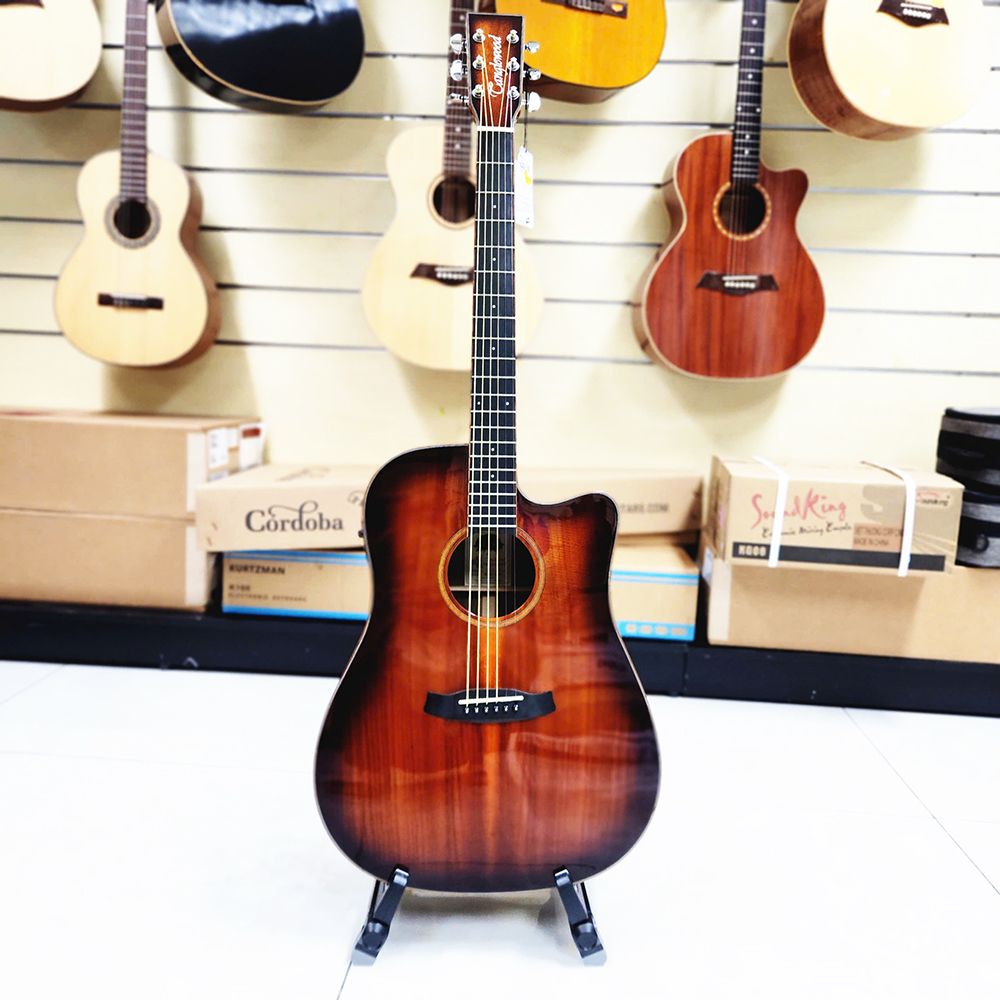 Đàn guitar Tanglewood TW5-KOA thuộc series đàn gỗ KOA cao cấp đến từ thương hiệu Tanglewood. Đàn được thiết kế với dáng đàn Dreadnought Cutaway thùng to, mang lại âm thanh vang và sáng. Các phụ kiện được trang bị cho dòng đàn này có chất lượng rất cao: Dây Elixir (USA), EQ Fishman (USA), khóa đầu đàn Grover (USA)....