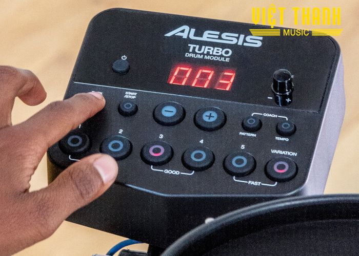 Ngoài máy đếm nhịp tích hợp, mô-đun trống Turbo còn có một chương trình Coach bao gồm 30 bản nhạc, các bài tập nhịp điều để giúp xây dựng và cải thiện kỹ năng của bạn. Ngoài ra còn có một đầu vào aux 1/8 kết nối máy tính bảng hoặc điện thoại. Mô đun trống Turbo cũng có thể kết nối với Mac hoặc PC thông qua cổng USB – MIDI để sử dụng phần mềm học trống hoặc phần mềm ghi âm và các plugin công cụ ảo. Mua ngay tại Việt Thanh Gò Vấp để nhận được mức giá ưu đãi mua Trống điện tử Alesis Turbo Mesh Kit giá rẻ dưới 10 triệu đồng