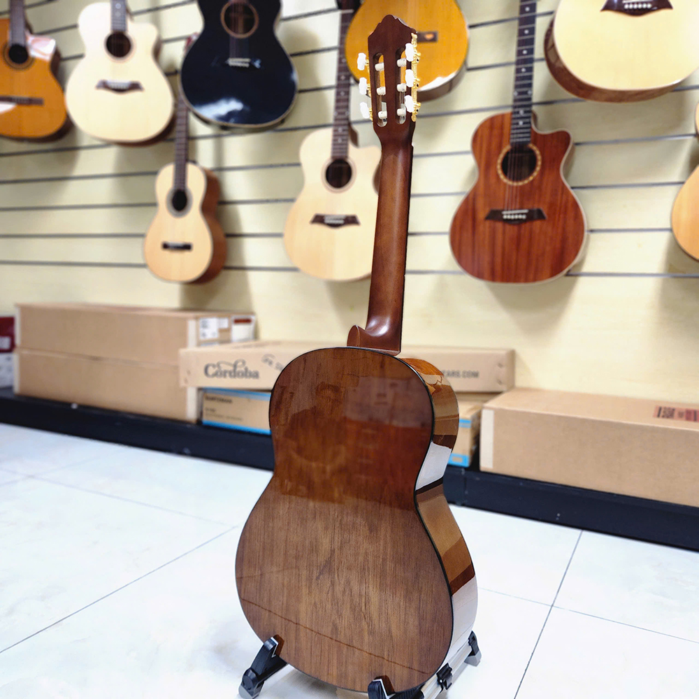 Lưng và hông đàn được thiết kế đạt chuẩn với chất liệu gỗ meranti được lớp sơn bóng phủ màu tạo đã mang tới một hình dáng hoàn thiện, sang trọng không chỉ dành riêng cho lưng và hông đàn mà lớp sơn bóng còn làm tôn lên sự tinh tế và giá trị cao cho một cây đàn Classic.