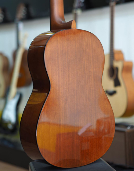 Đàn được thiết kế theo khuynh hướng cổ điển với dây nylon thân thiện với người dùng càng tạo nên điểm nhấn của model này.