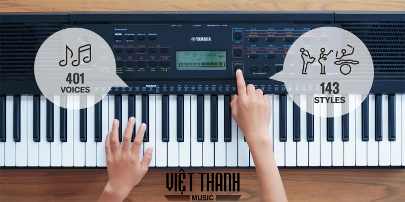 • 401 âm sắc chất lượng cao, kết hợp với 143 điệu nhạc đệm tự động